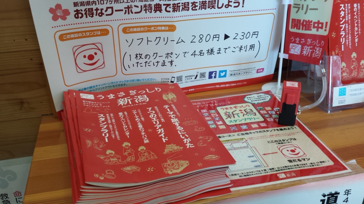 うまさぎっしり新潟スタンプラリー 投稿日時: 2015年3月24日 投稿者: 管理者 返信 「うまさぎっしり新潟」スタンプラリーが始まりました。(~6月30日まで) ここ道の駅いりひろせでは、共通クーポン券ご利用で、ソフトクリーム280円が230円になります。 ソフトクリームの種類は、バニラ、抹茶、チョコレート、そして新しくベリーミックスが仲間入りしました。 スタンプを押しがてらドライブにおいで下さい。 お待ちしております。