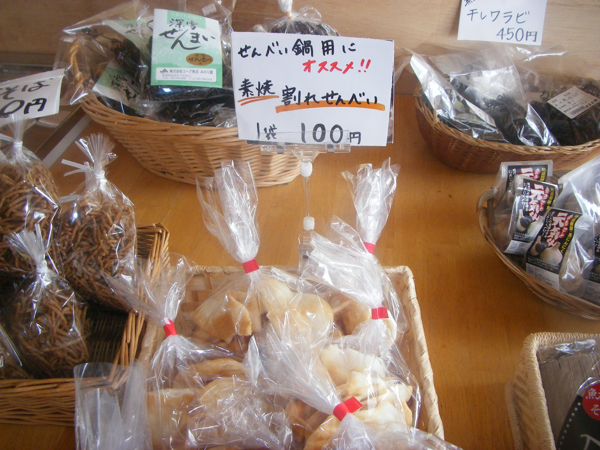 駅長ブログ 投稿日時: 2015年3月19日 投稿者: 管理者 返信 3月19日号 ー「しんのみせんべい」って何?ー ふさんこってせんべいの話に戻るこてや。 焼いてるとなじょんしたって割れせんが出らね。 そこで「せんべい汁用 1袋100円」 。 冬の鍋物に、みそ汁に放り込むだけ。 ⇓店の人気メニュ-「せんべい入り山ごっつぉ鍋」 ⇑お土産用割れせん 店のサービステーブルで試食。そいからお土産に、食卓に・・・。 そこそこの人気だんし。 そこで話は飛ぶども・・・ 「しんのみせんべい」を200円/袋で販売予定だんし。 (4月からの予定) はてさて、 「しんのみ」て何だろ? と期待を持たせながら、話の飛んだとこはまた明日。 ではごきげんよう。 駅長 貞一