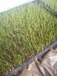 緑のじゅうたんになりました。この時期は1日に1cmくらい伸びます。本田への移植までやく20日です。田んぼはまだ雪の下ですが、最近の暖気なら時期に消えるでしょう。忙しくなりますね^_^;
