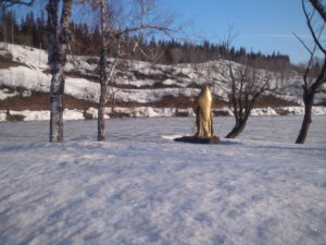 道の駅の駐車場のライン引き、桜の枝片付け、冬囲いの片付け、女神さんもブルーシートの冬眠から一気に陽を浴びて・・・。