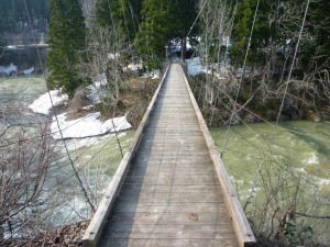 融雪の時期は水量が多くて流れが速いし、音もすごいので迫力あります。恐怖心から目が回っているのかつり橋が揺れているのか・・・?