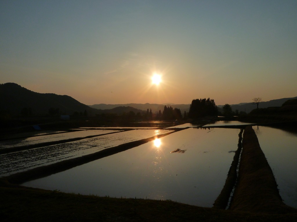 ケートラの窓から 投稿日時: 2012年5月19日 投稿者: いりひろせ お疲れ様です。佐藤貞です。今日は五月晴れになって、とても心地の良い一日でしたね。昨日はヒーターだったのに、今日はクーラーかけてトラクターにのってました。田んぼはトラクターや田植機が一生懸命動いて、とても活気に満ちていて張り合いのある一日でした。今日も夕日がきれいだったのでケートラの窓から写真を撮りました。 明日は今年初の田植えです。がんばろ。