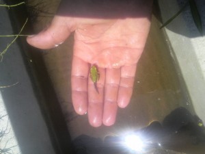 しっぽ付きのカエル。おたまじゃくしからカエルになるところですね。跳ねるし泳ぐし動きが速いです。