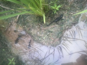 いきものいっぱい 投稿日時: 2012年8月17日 投稿者: いりひろせ 稲の穂揃い期になりました。田んぼの溝には生き物が集まります。ここにはヤモリとおたまじゃくしがたくさん集まっていました。ヤモリのお腹は紅い模様。 しかし、この時期までおたまじゃくしでいるのって、なんのカエルになるんだろう。大きいからウシガエルでしょうか。 佐藤 貞